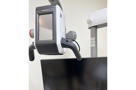 言葉だけでの説明では伝わりにくいと思いますので、当院では全ての治療室に一台ずつ装備しております。使用に際しては、使い捨てのカバーを取り付けていますのでご安心ください。